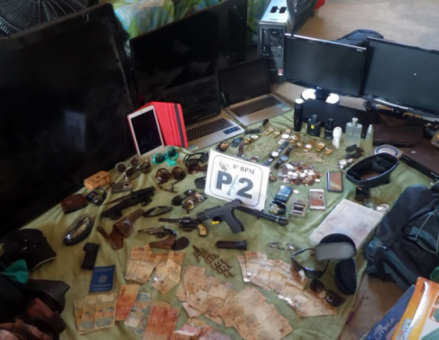 Com os suspeitos a polícia apreendeu uma pistola calibre 9 mm, três carregadores, 22 munições do mesmo calibre, um revólver calibre 32, uma garrucha calibre 22, uma munição calibre 38 e duas facas.