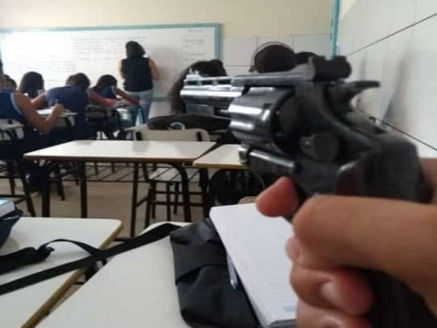 Policiais Civis chegaram até o menor depois de uma investigação.Policiais da 146º Delegacia de Polícia aprenderam na manhã desta quinta-feira ( 21/03), um menor que teria feita uma foto dentro de uma sala de aula com um revolver calibre 38.