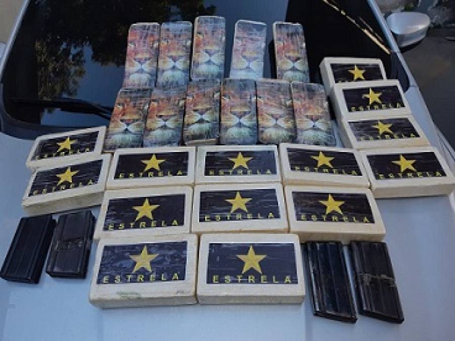 Foram feitas buscas e no interior do veículo encontraram 25 tabletes de pasta base de cocaína, quatro carregadores de fuzil e cinco munições. Todo material foi encaminhado para a Delegacia da Polícia Federal.