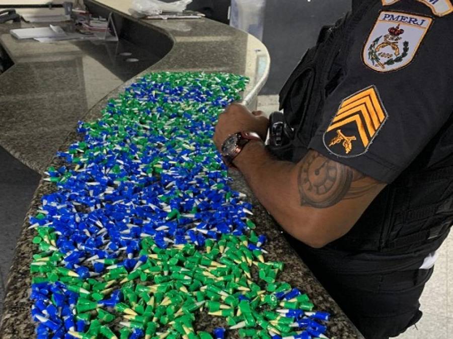 Policiais Militares apreenderam na rua Ewerton Paes da Cunha, no Parque Califórnia, em Campos 1.554 pinos de cocaína que estavam dentro de uma sacola. Os PMs estavam em patrulhamento quando viram o suspeito andando de bicicleta, e levando uma sacola presa no guidão.