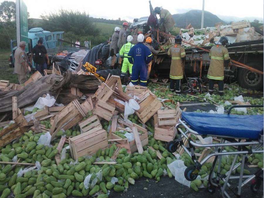 Um caminhão colidiu na traseira do outro, causando um forte impacto, derramando grande parte da carga de chuchu na pista. A rodovia ficou parcialmente interditada. Os nomes das vítimas não foram divulgados.