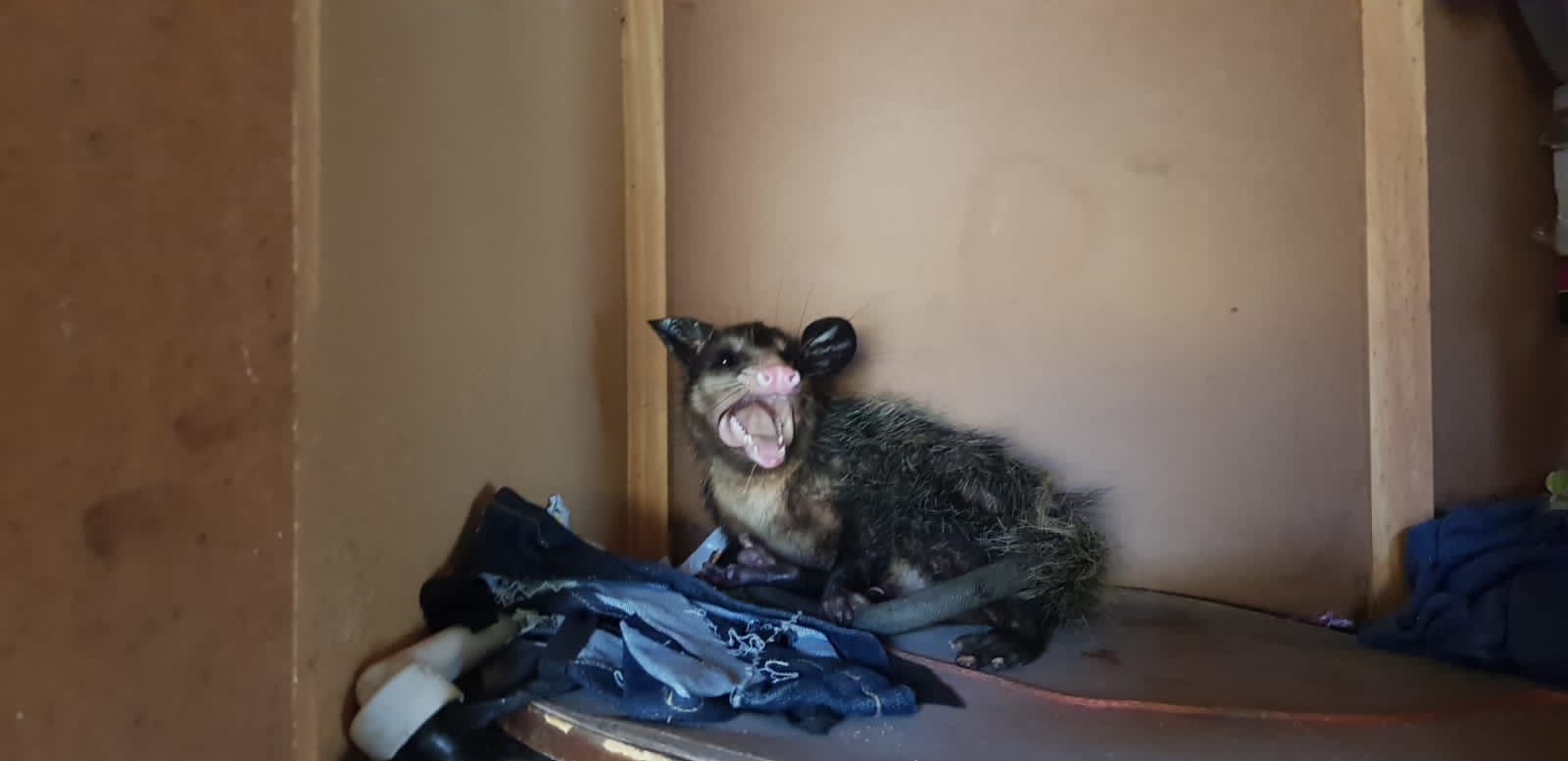 Também na quarta-feira, um fato curioso marcou dois resgates de gambás. As ações aconteceram em locais distintos, mas terminaram de forma conjunta.