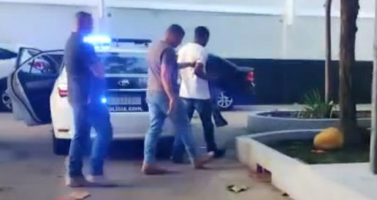 Os policiais civis, então, se dirigiram à praça do Santíssimo Salvador, onde, depois de alguns minutos, visualizaram o suspeito saindo do edifício Ninho das Águias sozinho. Os agentes da Deam se aproximaram, se identificaram e deram voz de prisão.
