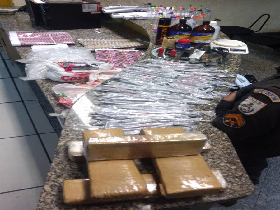 Em São Fidélis, também nesta terça-feira, foram apreendidos 49 pedras de crack, 51 pinos de cocaína, dois pedaços de maconha, 200 sacos de sacolé e um celular na Rua Francisco Ribeiro Neto, no Parque Tinola.