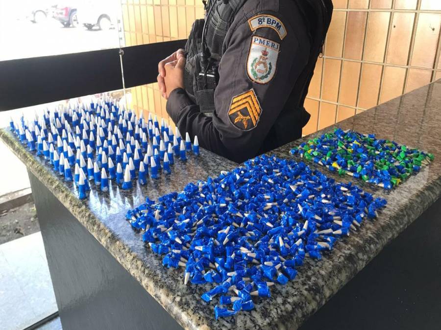 Policiais Militares apreenderam na manhã desta terça-feira (07/07), na Avenida São João da Barra, na comunidade “Tira Gosto”, em Campos 835 pinos de cocaína.