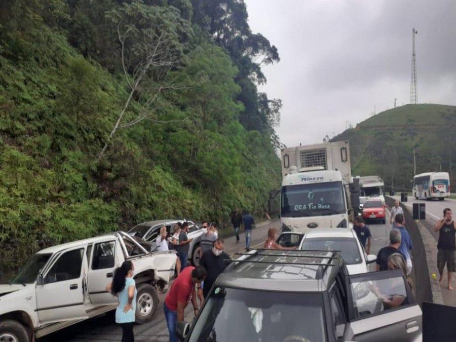 Engavetamento envolvendo 10 veículos deixa feridos na BR-101