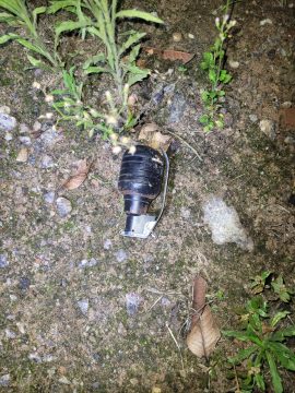 Durante as buscas, os policiais também localizaram uma granada que havia caído no quintal de uma casa vizinha, na Rua 2, possivelmente no trajeto de fuga dos criminosos. Segundo informações apuradas no local, o homicídio teria sido cometido por integrantes da facção criminosa ADA, que fugiram a pé por uma área de matagal.
